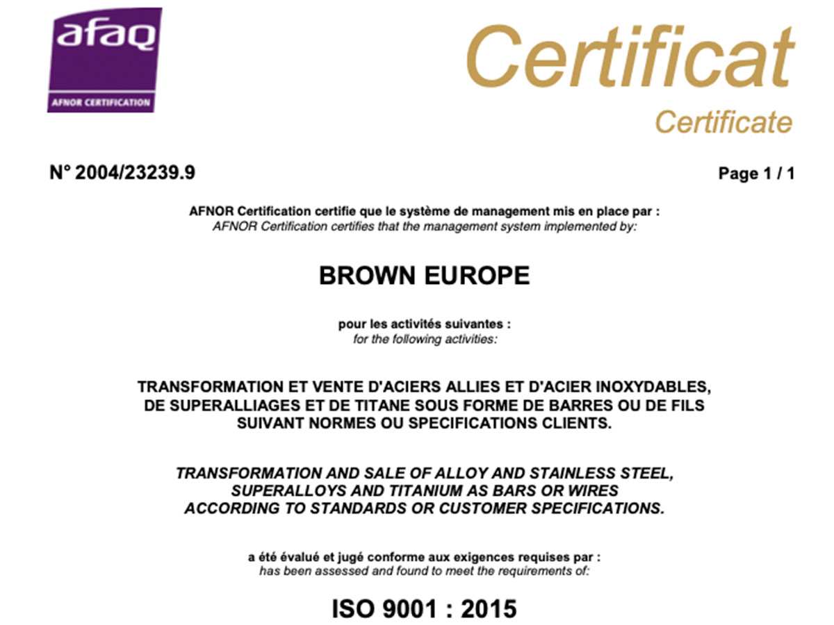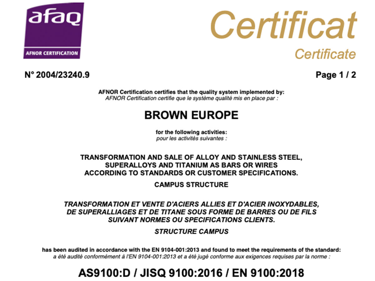 Brown Europe is ISO9001 and EN9100 certified, guaranteeing rigorous manufacturing and control procedures.